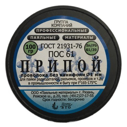 Припой-катушка 100 г ПОС-61 д. 1 мм без канифоли