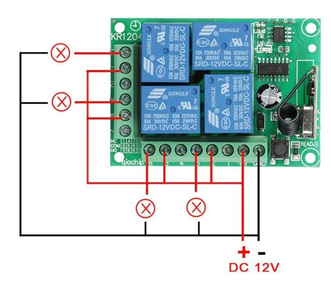Беспроводной четырехканальный комплект 12 В (непрерывный/коммутации/переключатель) KR1204-4+KT01-4