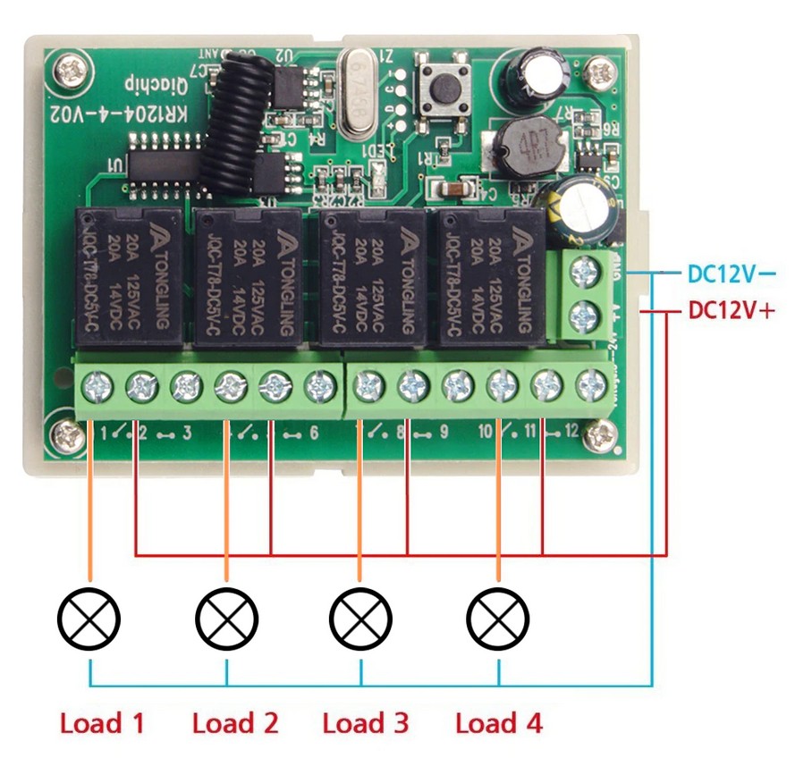 Беспроводной четырехканальный приёмник 6-30 В (режимы непрерывный/коммутации) KR1204-4-V02 Распродажа Хит продаж