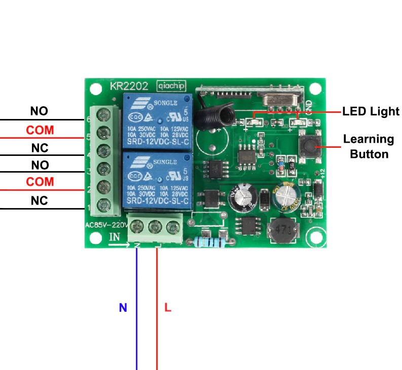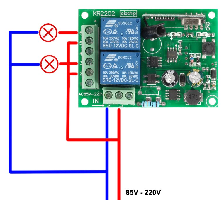 Беспроводной двухканальный приёмник 220 В (режимы непрерывный/коммутации/переключатель) KR2202-4