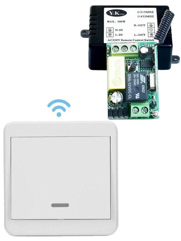 Беспроводной одноканальный комплект 220 В радиоблок + пульт-выключатель YK-220R01INOUT+8601N
