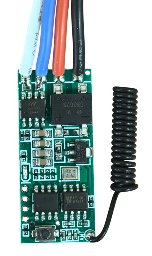 1) Режим "Непрерывный" : нажать на кнопку обучения 1 раз. Светодиодный индикатор загорится. Нажмите по очереди кнопки вверх и вниз на пульте управления, индикатор погаснет - пульт запрограммирован.