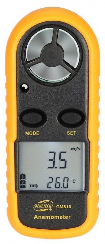 Портативный крыльчатый анемометр Benetech GM816, позволяет быстро и точно измерить скорость движения воздушного потока, его температуру и объем воздуха, проходящего через сечение воздуховода. Идеально подходит для парусного спорта, рыбалки, запуска воздушных змеев и альпинизма. Используется на промышленных предприятиях и в домашних условиях для измерения температуры процессоров, скорости компьютерных вентиляторов, кондиционеров. Анемометр позволяет фиксировать показания, вычислять среднюю и текущую скорость воздушного потока, выбирать и сохранять в памяти минимальные (максимальные) значения измеряемых показателей.