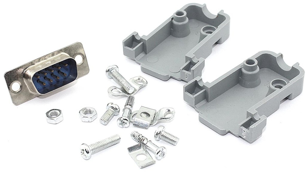 Разъем типа DB-9 штекер (папа) под пайку с пластиковым корпусом на кабель в комплекте предназначен для терминальных соединений (например, RS-232).