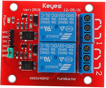 Модуль содержит 2 независимых реле. Каждое реле имеет одну группу контактов на переключение. Модуль имеет оптическую развязку! Предусмотрены отверстия для крепления модуля.