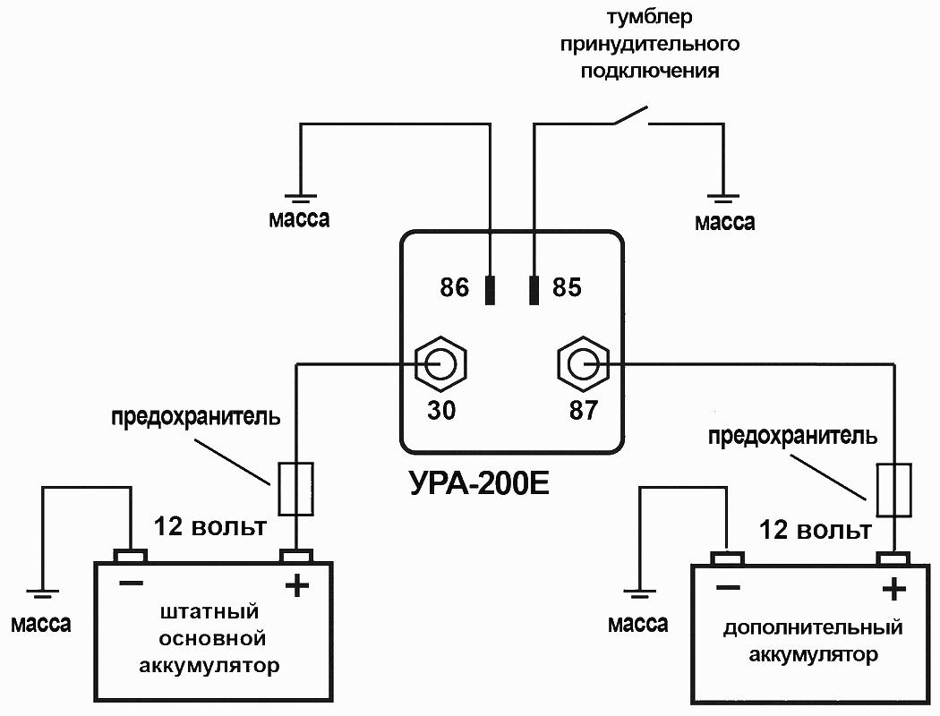 • Прибор УРА-200Е предназначен для гальванической развязки основного (штатного) и дополнительно установленного второго (дополнительного) аккумуляторов. Основной аккумулятор используется только для запуска двигателя, все остальные электропотребители питаются от дополнительного аккумулятора.