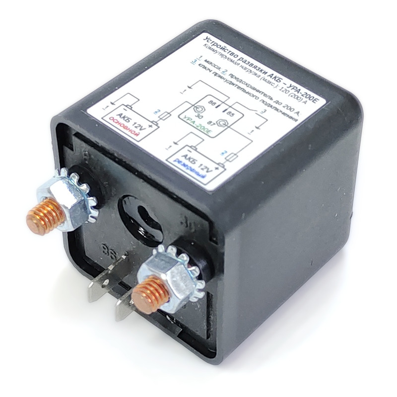 Устройство развязки аккумуляторов УРА-200Е предназначено для подключения дополнительного аккумулятора в бортовую сеть автомобиля и управления его зарядкой. УРА-200Е представляет собой электромагнитное механическое реле со встроенной электронной схемой управления на основе микроконтроллера.