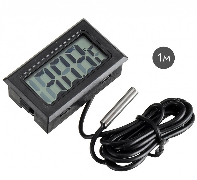 Отлично подходит, как в качестве уличного термометра, датчик можно вывести на улицу прямо через обычное пластиковое окно и просто его закрыть, так и в качестве термометра в террариум или инсектариум.