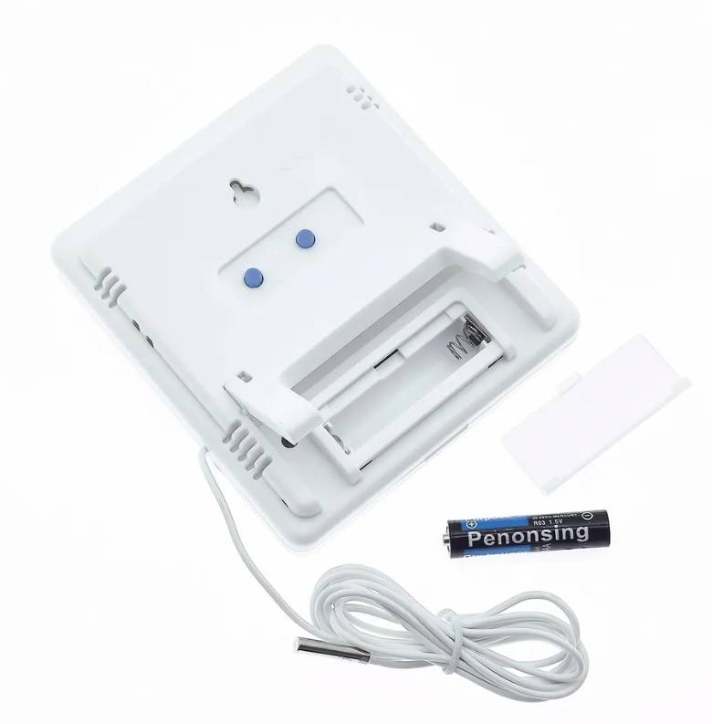 Термометр гигрометр , благодаря проводному выносному датчику длиной 1,5 метра, позволяет измерять температуру вне помещения. Также термометр измеряет температуру и влажность в помещении. В дополнении к основным функциям, на дисплее термометра отображаются часы.
