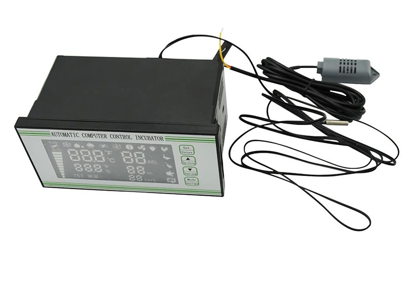 Температурный режим контролируется с помощью высокоточного датчика температуры и регулируется в широком диапазоне от 5 до 50 °C. Влажность регулируется в диапазоне 0-99% с вероятностью погрешности всего до 3%. Частота поворота яичного лотка регулируется (по умолчанию 1,5 часа). Система контроллера проветривает камеру и поддерживает постоянный приток свежего воздуха к яйцам.