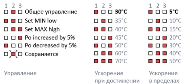 Для сохранения любой настройки достаточно дождаться окончания мигания индикаторов ≈ 20 секунд