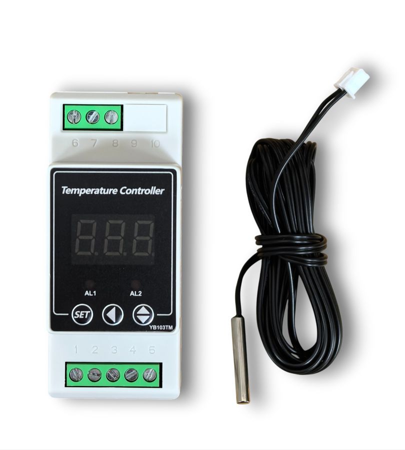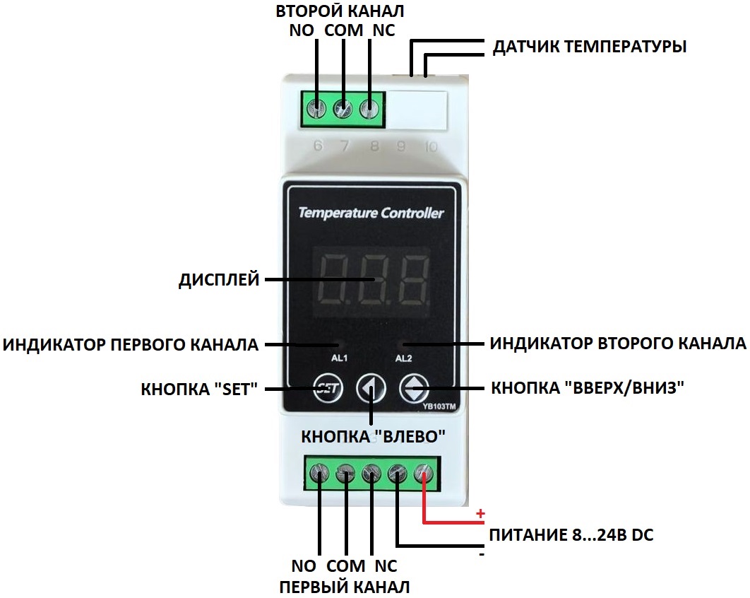 Терморегулятор цифровой YB103TM-RED, 8-24В DC, с двумя выходами 10А, датчик гильза