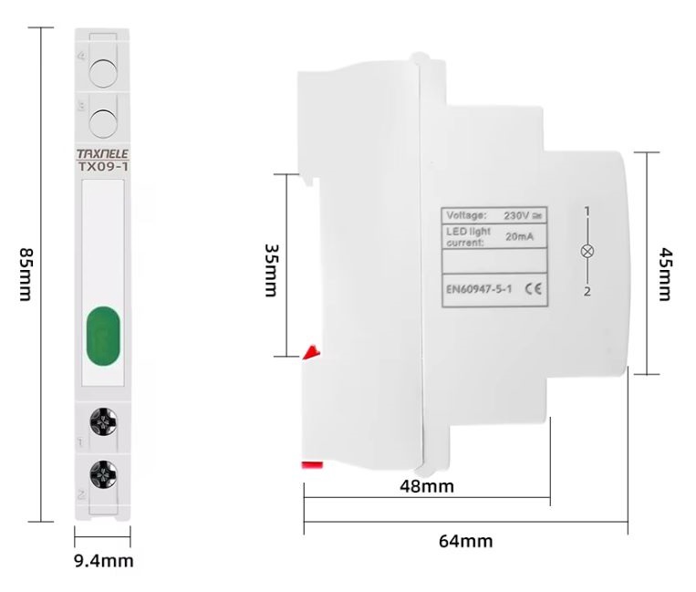 Индикатор напряжения на DIN-рейку, 1 фаза 230В, TAXNELE TX09-1, зелёный