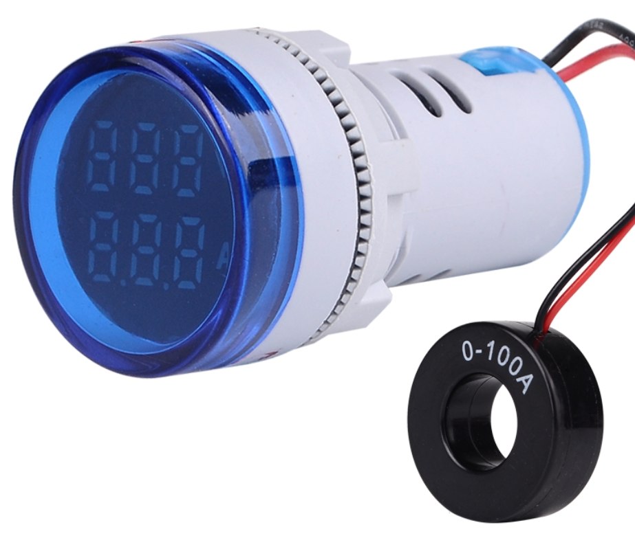 Индикатор с вольтметром и амперметром Ø22 60-500 В, до 100 А AD22-RAV синий