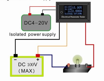 Миниатюрный ваттметр/вольтметр/амперметр постоянного тока (тестер емкости батарей) до 100 В/10А