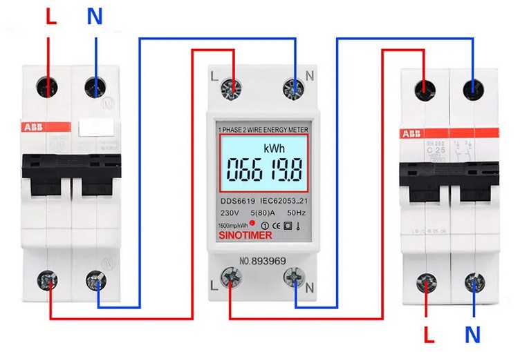Однофазный электронный счетчик электроэнергии на DIN-рейку 230В, 80А Sinotimer DDS6619-006