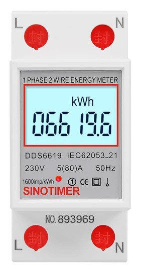 Однофазный электронный счетчик электроэнергии на DIN-рейку 230В, 80А Sinotimer DDS6619-006