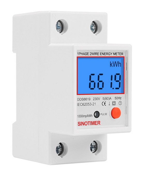 Однофазный электронный счетчик электроэнергии на DIN-рейку 230В, 80А Sinotimer DDS6619-012