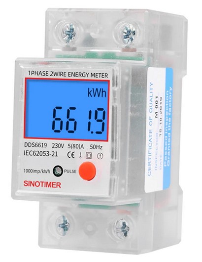 Однофазный электронный счетчик электроэнергии на DIN-рейку 230В, 80А Sinotimer DDS6619-013