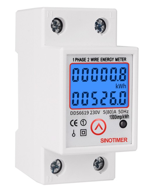 Однофазный электронный счетчик электроэнергии на DIN-рейку, 230В, 80А Sinotimer DDS6619-526L-2