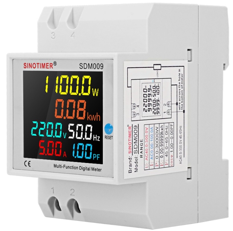 Цифровой мультиметр Sinotimer SDM009 на DIN-рейку со встроенным измерительным трансформатором тока.
