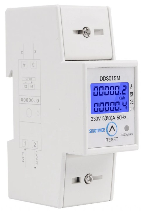 Цифровой электросчетчик на DIN-рейку Sinotimer DDS015M также имеет функции измерения напряжения, тока, мощности, частоты, коэффициента мощности.