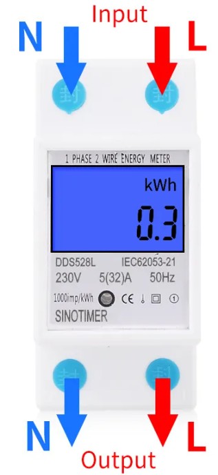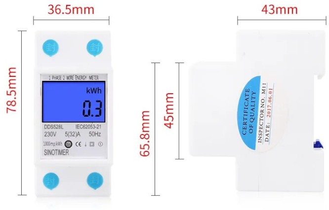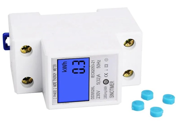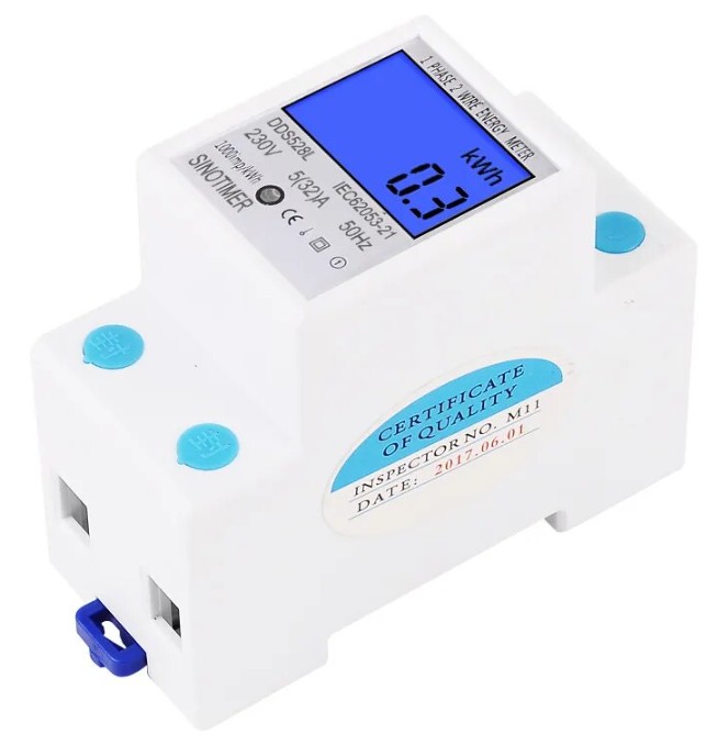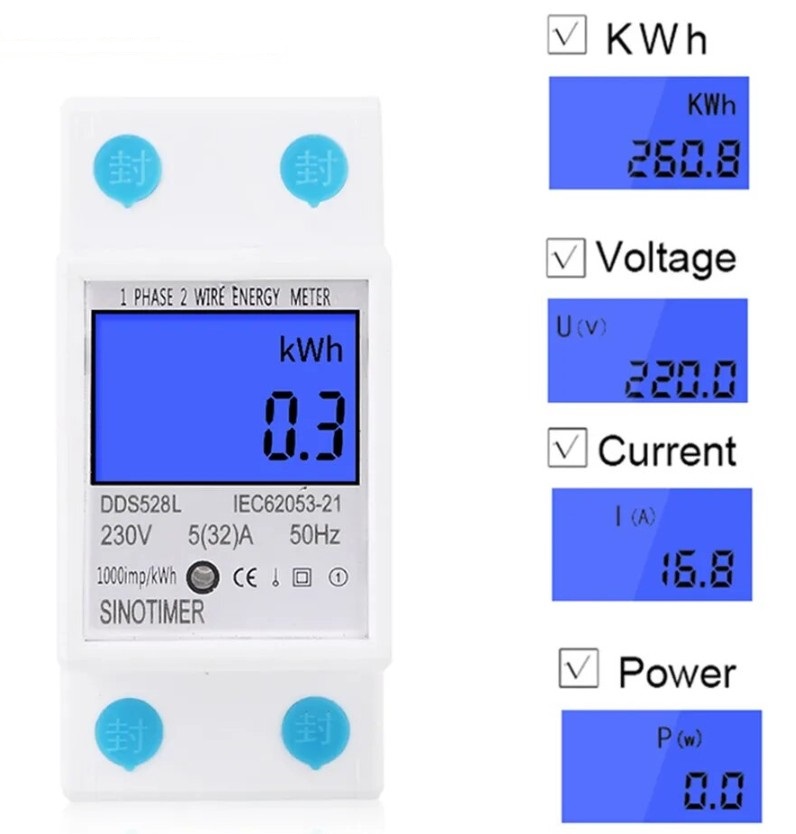 Цифровой ваттметр, вольтметр и электросчетчик на DIN-рейку 230В, 32А Sinotimer DDS528L