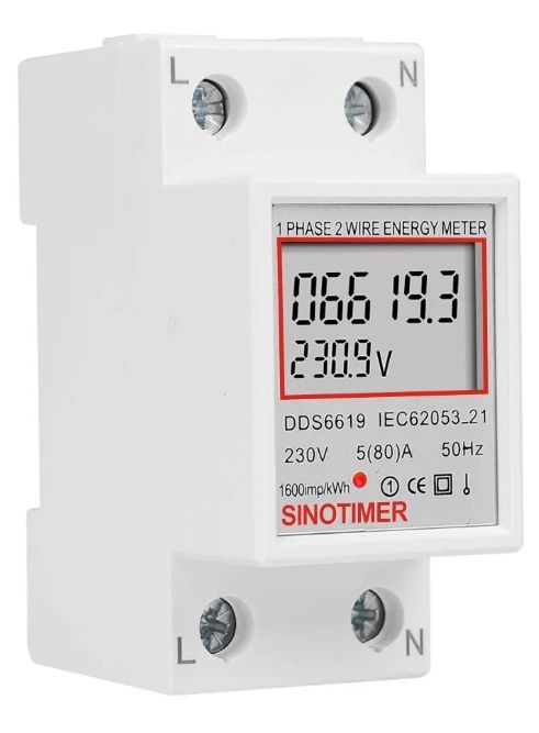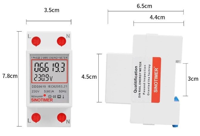 Цифровой ваттметр, вольт-амперметр и электросчетчик на DIN-рейку 230В, 80А Sinotimer DDS6619-003