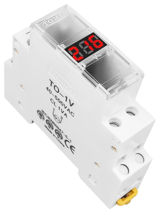 Цифровой вольтметр на DIN-рейку, 40В-500В, прозрачный, TOMZN TO-1V