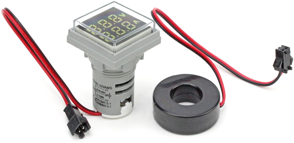 Цифровой вольтметр амперметр 22 мм VA22S-BLUE-500-100
