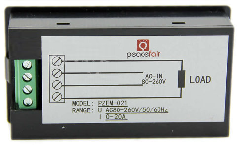 Вольтметр, амперметр, ваттметр PZEM-021, 80—260 VAC, 20 А