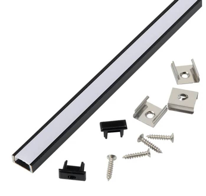 Комплект профиля для светодиодной ленты накладной 2000х16x7мм (экран + заглушки + крепеж) Черный