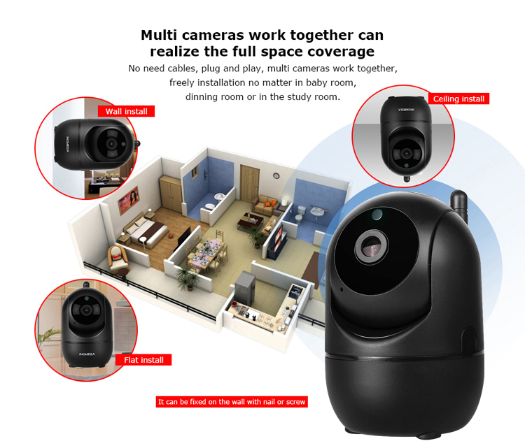 Камера WI-FI поворотная Орбита OT-VNI20B (1920x1080,TF до 128Гб) Черная