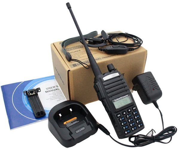 Рация Baofeng UV-82 - усовершенствованный вариант всем известной Baofeng UV-5R.  Отличительными особенностями являются повышенная выходная мощность (5 Вт) и аккумулятор увеличенной емкости (2800 mAh). Но, пожалуй главным новшеством радиостанции можно считать двойную кнопку PTT, благодаря которой можно производить передачу сигнала на любой из двух выбранных активных частот.