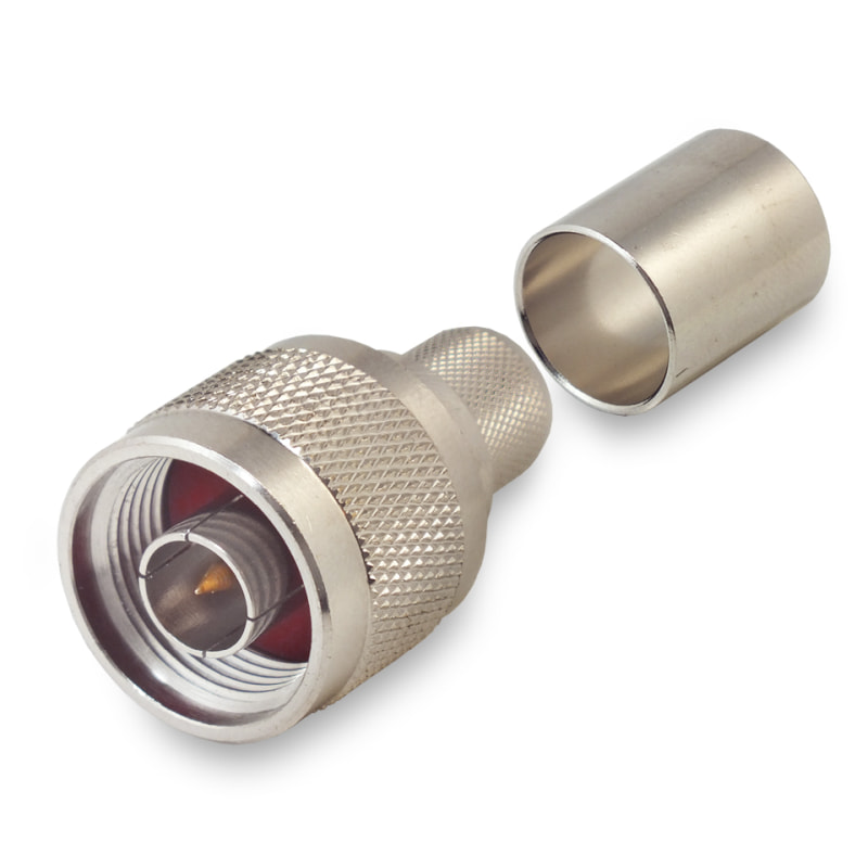 Радиочастотный разъем (штекер) N-типа без пайки - цанга (жила) и обжим (оплетка) на кабель типоразмера 8D-FB. Обычно устанавливается со стороны соединителей (на кабельные сборки). Используется в широком круге высокочастотной радиоаппаратуры с номинальным волновым сопротивлением 50 Ом.