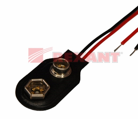 Клемма на крону REXANT предназначена для подключения питания к измерительному инструменту, различным пультам дистанционного управления, бытовым устройствам (радиоприемники, телефонные аппараты), радиоуправляемым моделям и другой электротехнике, имеющей совместимые по форме контакты типа "Крона". Клемма состоит из контактной группы и двух изолированных многожильных проводов длинной 15 см, подготовленных (окончания зачищены и облужены оловом) к использованию. Сечение жилы проводника составляет 0.3 мм.