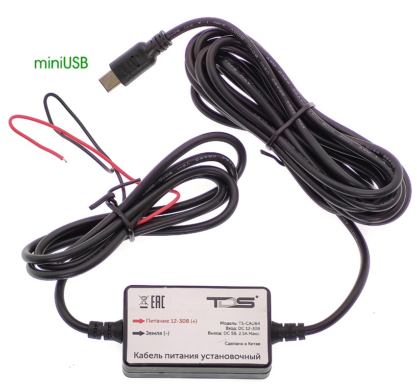 Кабель питания установочный для авто 2.5м (12-24В, miniUSB, 2500mA) TDS