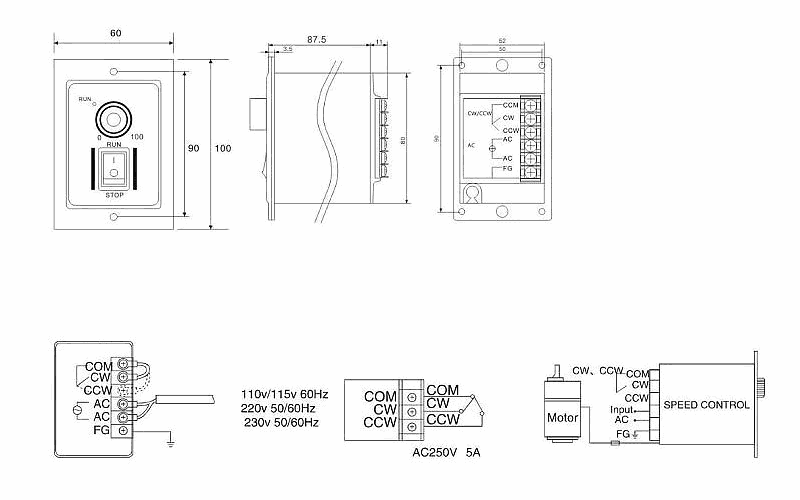 • Выбор направления вращения двигателя выбирается установкой перемычки между контактами COM—CW (по часовой) или COM—CCW (против часовой);