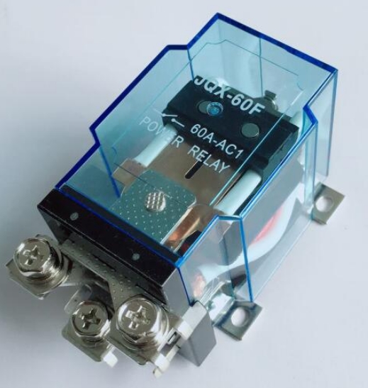 Силовое промежуточное реле JQX-60F с одним перекидным контактом. Допустимый ток через контакты до 60 ампер. Напряжение питания управляющей катушки - 12В постоянного тока. Применяются в схемах автоматики для коммутации электрических цепей постоянного и переменного тока.