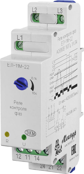 Реле контроля трехфазного линейного напряжения Меандр ЕЛ-11М-22 AC690В УХЛ4