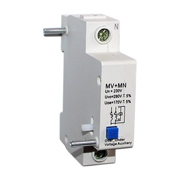 Дополнительный контакт (расцепитель) минимального и максимального напряжения MV+MN предназначен для отключения одно-, двух-, трех- или четырехполюсного автоматического выключателя серии ВА 47-63 при недопустимом снижении или повышении напряжения. Расцепитель выполнен в габарите однополюсного автоматического выключателя ВА-47-63.
