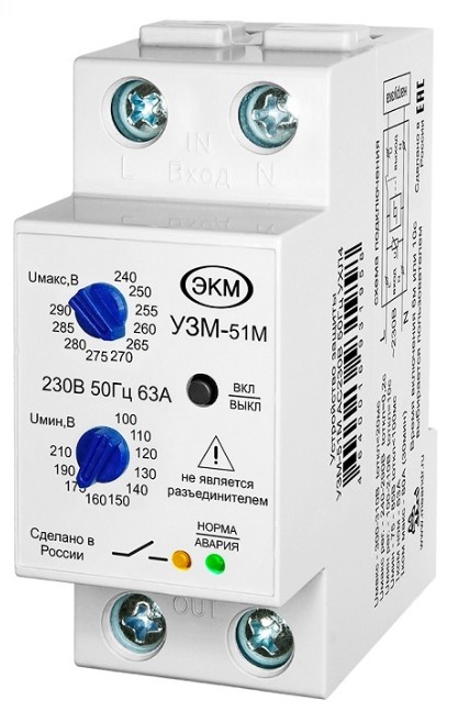 Устройство защиты многофункциональное УЗМ-51М предназначено для отключения оборудования при снижении и повышении сетевого напряжения в однофазных сетях, защиты подключённого к нему оборудования (в квартире, офисе и пр.) от разрушающего воздействия импульсных скачков напряжения, вызванных срабатыванием близкорасположенных и подключённых к этой же сети электродвигателей, магнитных пускателей или электромагнитов, тем самым предотвращая выход оборудования из строя и возможное возгорание с последующим пожаром. При включении УЗМ по схеме, как показано на рис. 3, возможно дистанционное управление нагрузкой (функция импульсного реле). При отключении нулевого проводника устройство будет отключать нагрузку, а при подключении включать с установленной задержкой.
