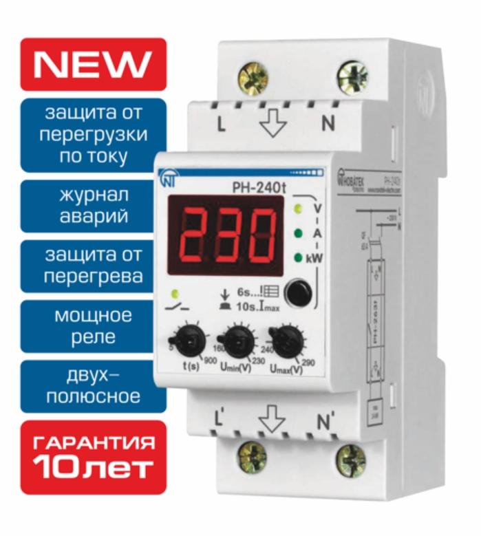 Реле напряжения 40А с защитой от перегрева, индикация V, A, kVA, kW, kVAr РН-240t Новатек-Электро