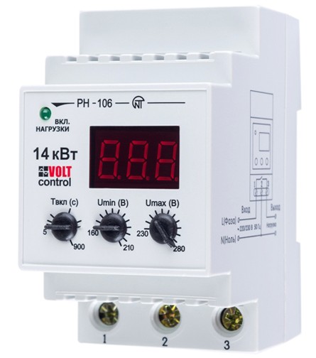 Реле напряжения РН-106 "Volt Control" предназначено для защиты бытовой техники (оборудования) (холодильников, кондиционеров, стиральных машин, теле-, видео- и аудиотехники и т.п.) мощностью до 14 кВт для РН-106 от недопустимых колебаний напряжения в сети и последствий обрыва нейтрали.