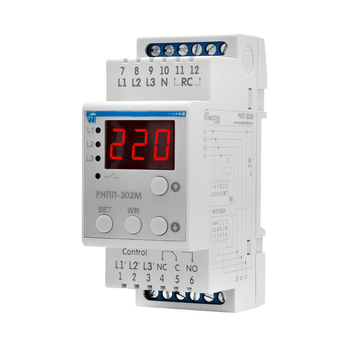 Трехфазное реле напряжения и контроля фаз РНПП-302М Новатек-Электро