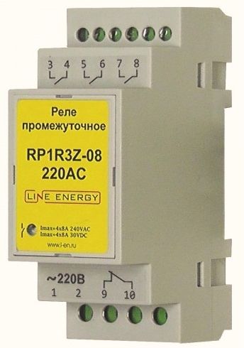 Реле промежуточное AC 220В, (3З+1Р)х8А Line Energy RP1R3Z-08-220AC