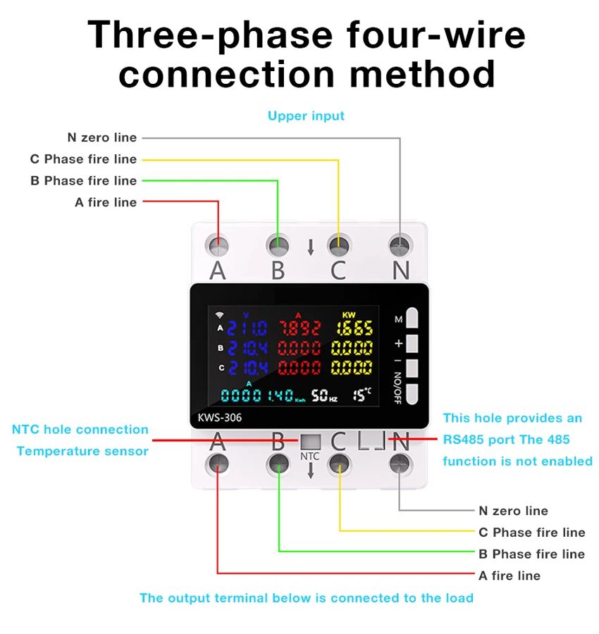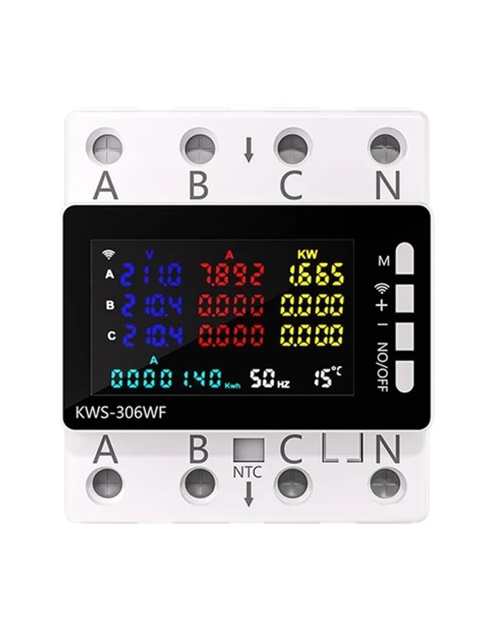 Измеритель энергии + реле напряжения 3 фазы 85-290В, Wi-Fi, 80А KWS-306WF