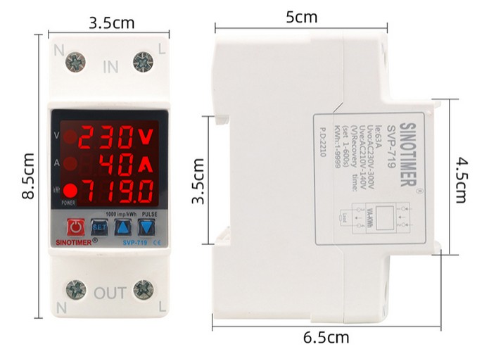 Реле контроля напряжения и тока с функцией измерения кВт*ч Sinotimer SVP-719 63A