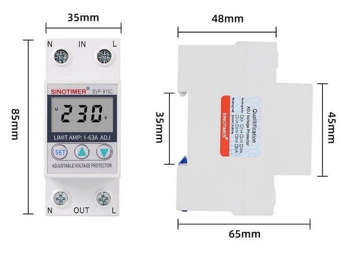 Реле напряжения SVP-915C-63 используется для защиты бытовых устройств однофазной электросети от внезапных перепадов в сети, а также превышения потребления тока. С его помощью вы можете самостоятельно установить предельно допустимые значения, превышение которых приводит к аварийному отключению электроэнергии. Модель оптимальна для установки в частных домах, квартирах или офисах. Компактное изделие устанавливается внутри щитка с помощью DIN-рейки.