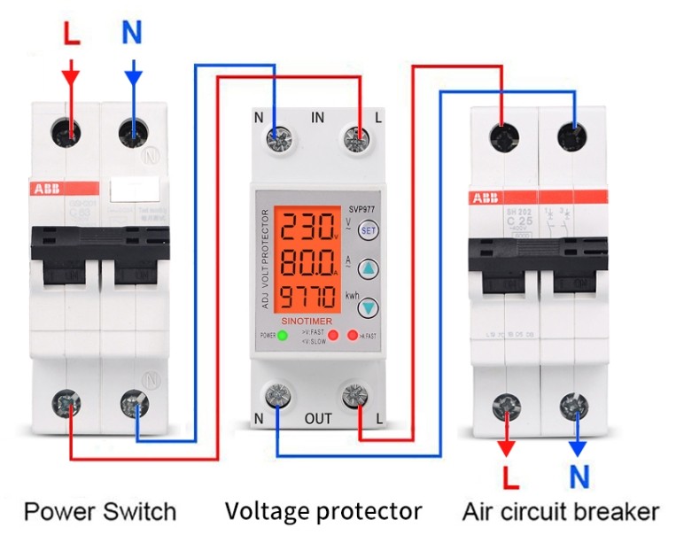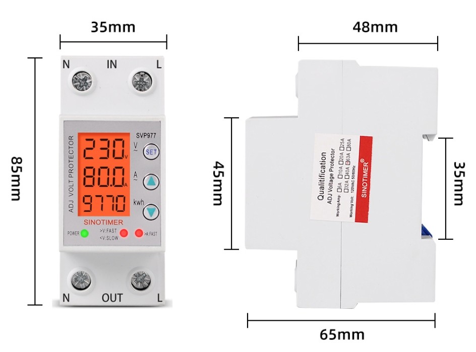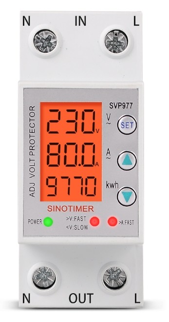 Реле контроля напряжения, тока, счетчик кВт Sinotimer SVP-977L 80A с подсветкой